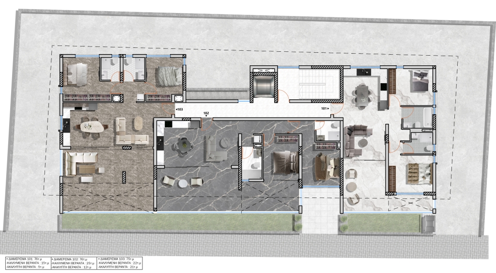 Each apartment in Arcadia Residence features spacious open-plan living areas with high-end finishes and floor to ceiling windows and sliding doors that open up to large verandas that offer amazing outdoor living  space.The penthouses boast private roof gardens with stunning views of the surrounding area, perfect for entertaining or simply relaxing.
